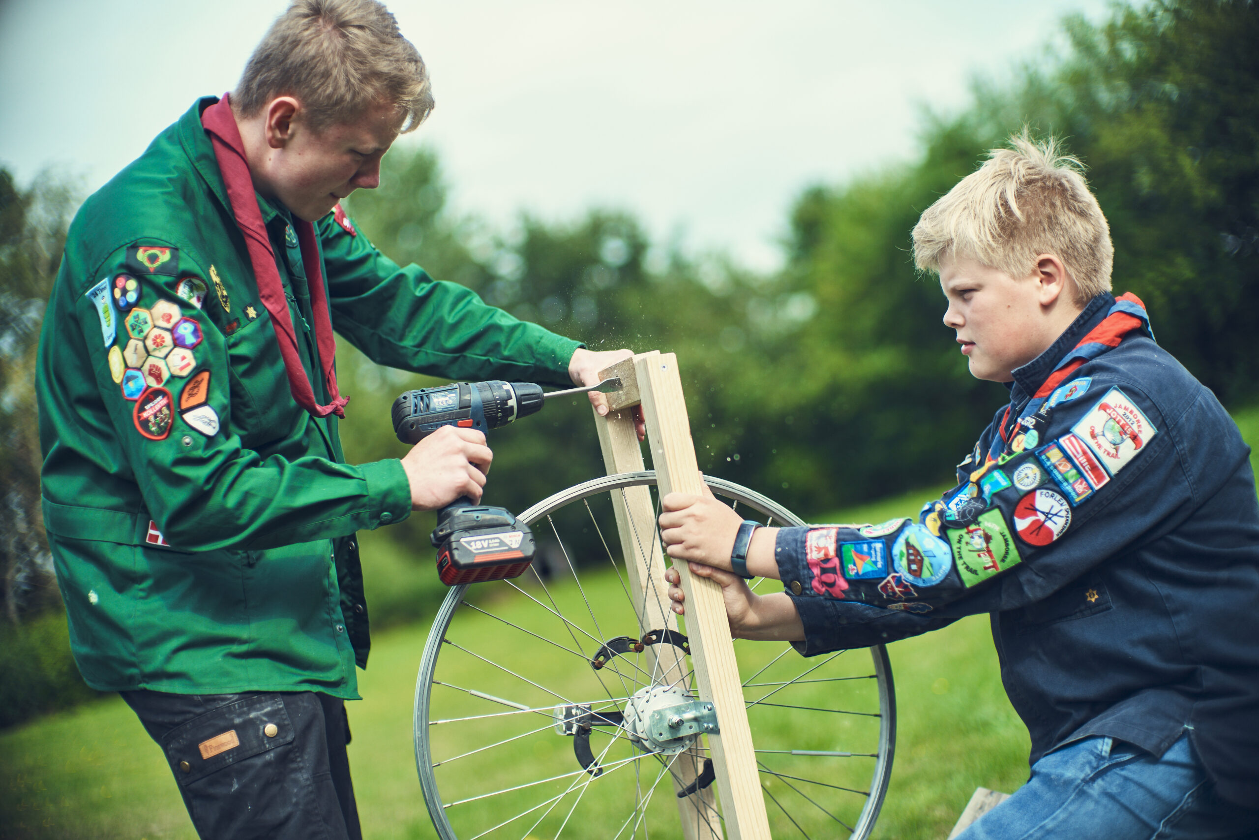 Pas på, når I saver, borer og skruer. Husk at spænde vinklerne fast, når I skal bore hullet op til hjulets aksel Det kan udføres af lederen inden mødet pga. sikkerheden.