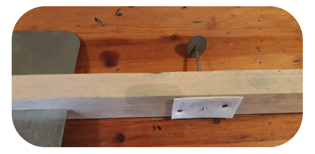 - Monter dynamo på lægten, skær gerne et par små hakker i enden af lægten, så dynamoen kan ligge helt tæt op ad enden af lægten. Bor eventuelt et 5mm hul i dynamoens plade for enden af lægten og monter en ekstra skrue, så holder den bedre i blæsevejr.